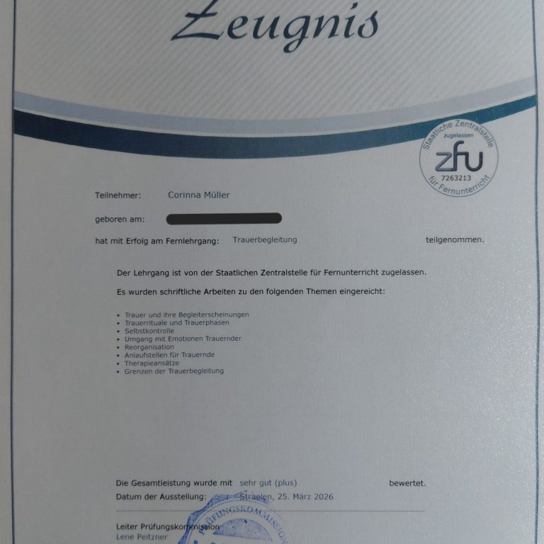 Das Fernstudium zum Trauerbegleiter habe ich bei Laudius abgeschlossen.